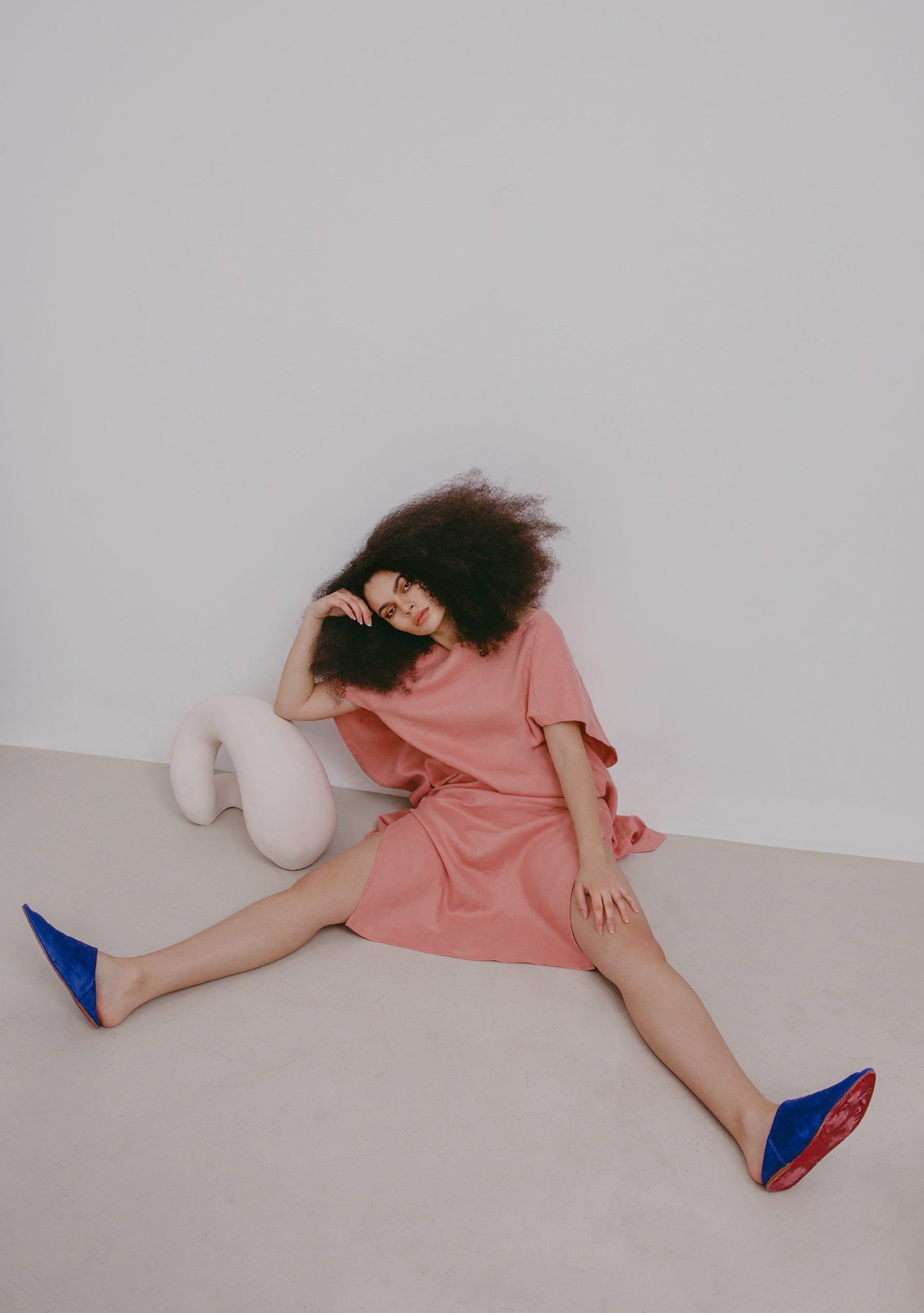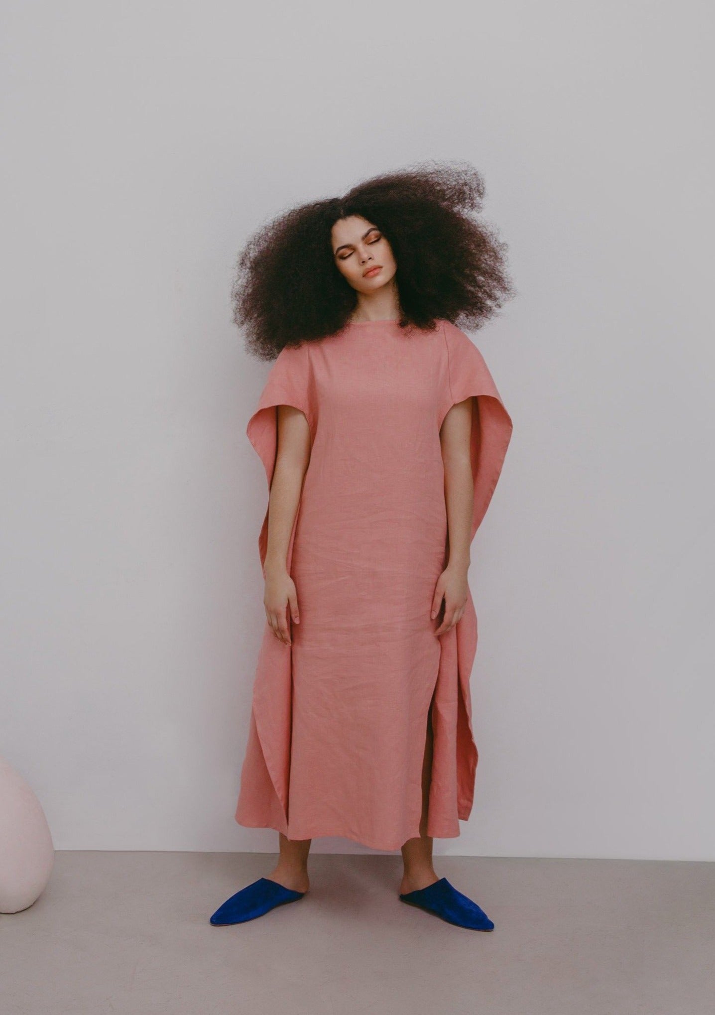 Le caftan «Diana» est confectionné en lin respirant, créant une silhouette fluide et sculpturale. Ce style est parfait pour la ville et la plage et peut facilement être associé à une gamme de styles de chaussures. Également disponible en rose.